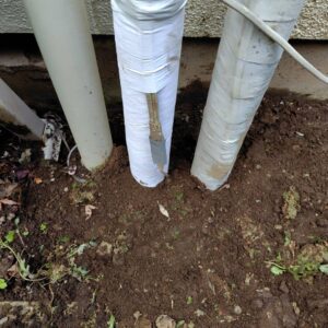 駆けつけて見てみると地面の中の給水管が漏水していました。